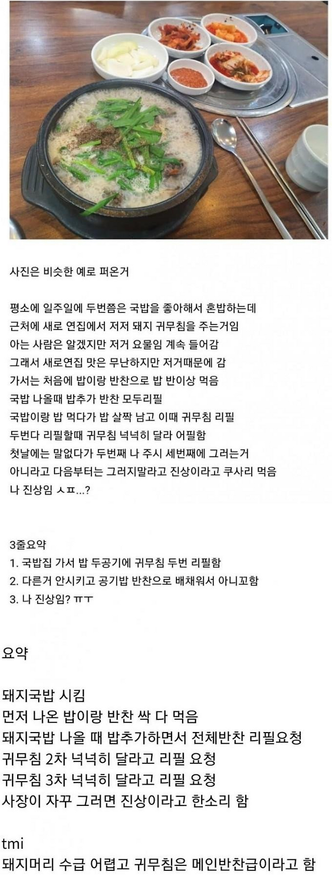 국밥집에서 진상이었나 아닌가 판단 해주세요