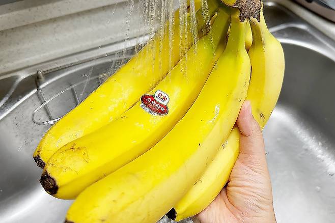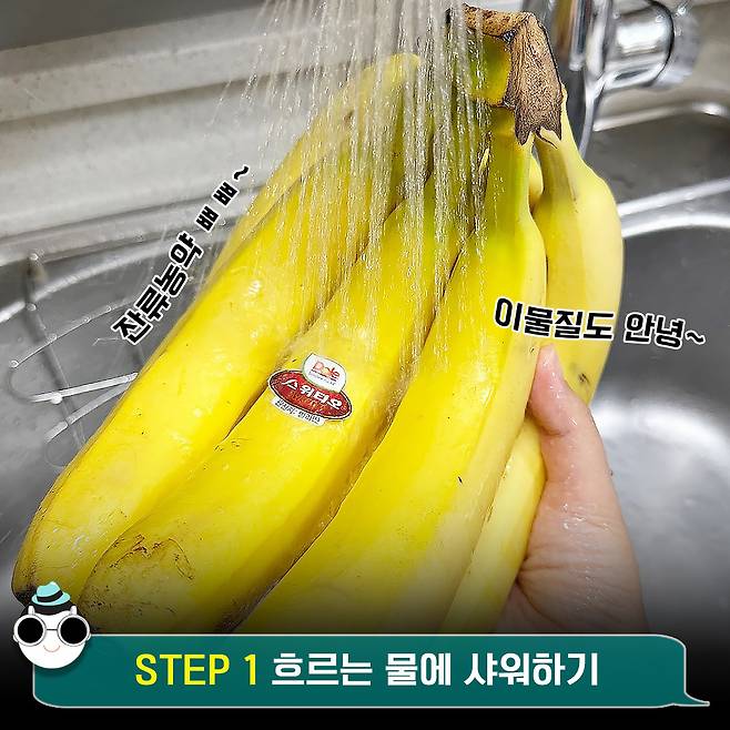 이 과정을 통해 잔류농약도 제거하면서 바나나 껍질 표면에 끈끈하게 남아있는 당분 및 이물질도 함께 제거할 수 있답니다. 그러다 보면 벌레꼬임도 자연스레 덜할 수밖에 없죠~