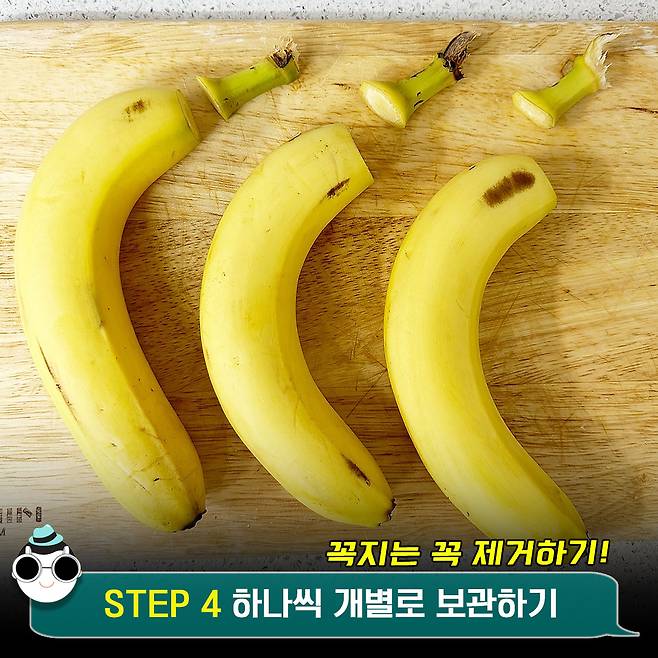 하나 더~ 바나나 변색의 원인 중 하나인 에틸렌 역시 바나나 꼭지에서 나오거든요?