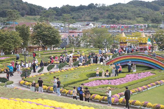 포토존은 치즈 조형물 앞, 국화터널, 잔디광장이 특히 인기입니다.