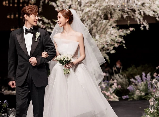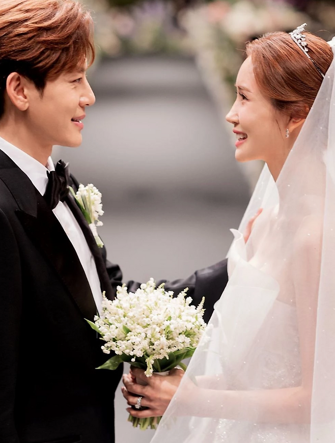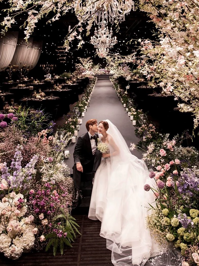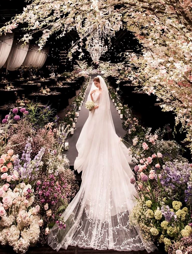 이다해는 본식드레스에 화이트 컬러인 은방꽃 부케를 매치해 화사한 분위기를 자아냈다.