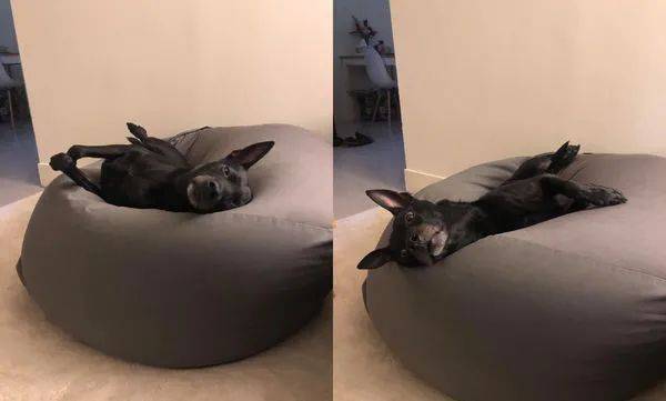 역시 소파의 마법 같은 매력이 대단합니다. 소파가 놓인 날부터 강아지는 점점 더 게을러졌고, 소파의 포근함에 완전히 빠져버린 모습입니다.