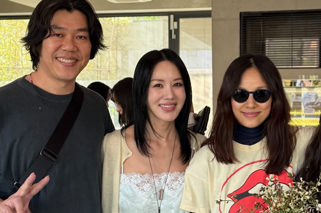 공개된 사진 속 세 사람은 모두 환하게 미소 짓고 있어 보는 이들에게 훈훈함을 전하고 있다. 이상순은 편한 차림으로 브이 포즈를 하고 있고 이효리 역시 선글라스를 낀 채 편안한 차림을 하고 있으며 손에는 엄정화를 위한 것으로 보이는 꽃다발을 들고 있다. 엄정화는 두 사람의 가운데에 서서 행복감을 드러냈다.