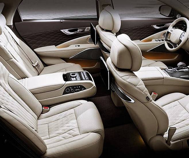 K9의 실내는 운전자보다 오히려 뒷좌석 승객을 더 신경 썼다고 해도 과언이 아니다. 특히 2열 공간은 여유로운 시트 배치와 정숙한 실내 환경 덕분에, 비즈니스용이나 가족용 차량으로도 높은 점수를 받고 있다. 외부 소음 유입이 거의 없고, 바닥 진동과 바람 소리도 효과적으로 제어된다.