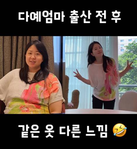두 영상 속 김다예는 똑같은 옷을 입고 체중 감량 전후 비교 모습을 보여주고 있다. 김다예는 살이 빠지면서 달라진 몸매와 옷태를 뽐냈다.
