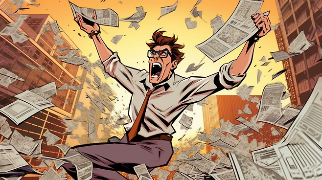 flail은 ‘혼란스럽게 마구 흔들다’라는 뜻을 가진 단어야. 나뭇가지가 거센 바람에 앞뒤로 마구 흔들리거나 사람이 팔을 흔들 때 사용되는 단어야. 커밋이 팔을 마구 흔들어대는 아래 이미지처럼 말이지.