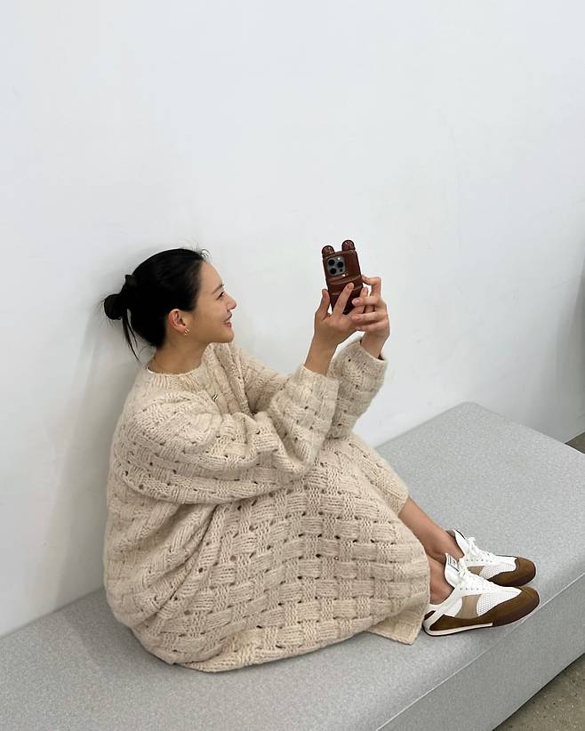 아이보리 컬러의 케이블 니트 원피스를 착용한 수현이 편안하면서도 스타일리시한 룩을 완성했다. 풍성한 텍스처가 돋보이는 니트 원피스는 따뜻함과 여성스러움을 동시에 표현하며, 브라운과 화이트 배색의 로퍼로 포인트를 주었다. 심플한 헤어스타일과 미니멀한 액세서리로 일상적이면서도 세련된 스타일을 연출하고 있다.