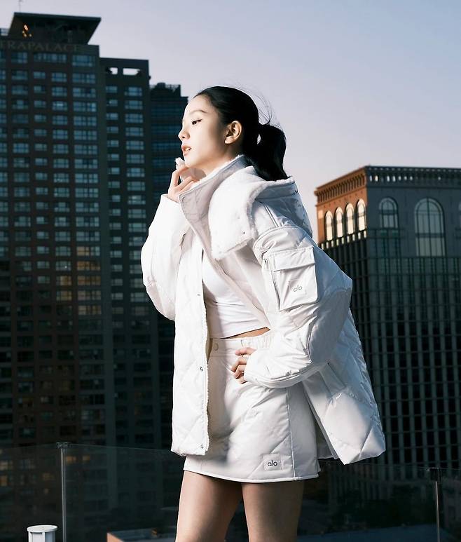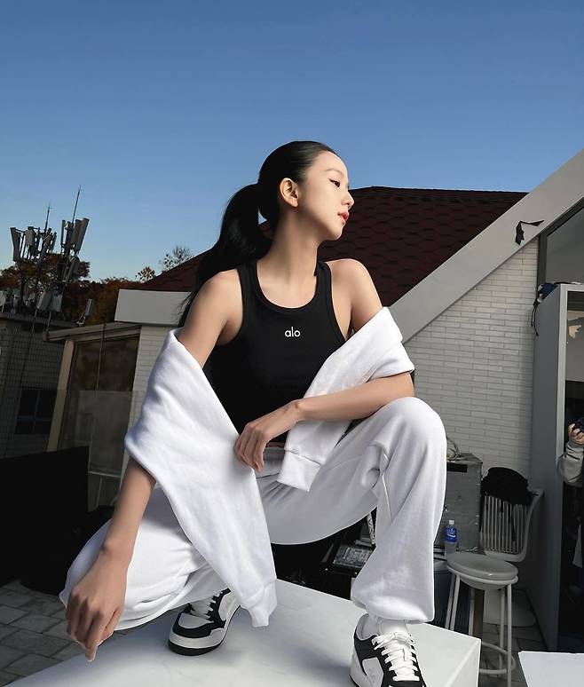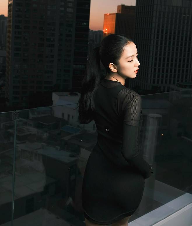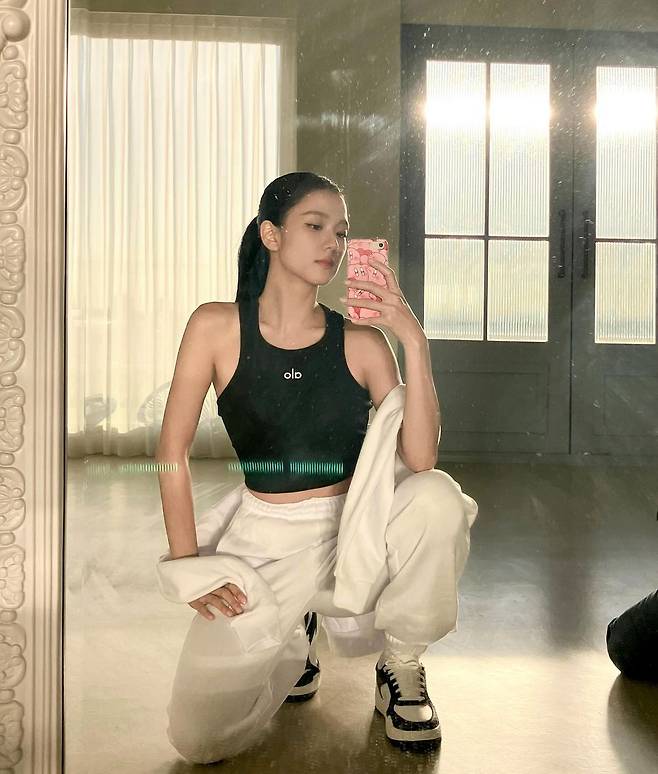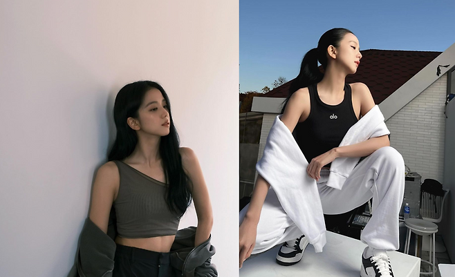 사진 속 지수는 한쪽 어깨가 드러난 그레이 탑과 블랙 팬츠를 입고 날씬한 몸매를 자랑했다. 또 다른 사진에서는 블랙 나시탑과 흰 맨투맨과 팬츠, 또 흰 패딩과 스커트, 블랙 크롭 집업과 핑크 레깅스를 신고 다양한 운동복을 소화해냈다.