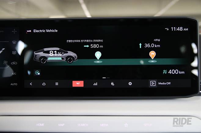 이번 시승에선 전비왕 선발대회를 함께 진행한다고 한다. 자동차 기자들 중 워낙 고수가 많다보니 1등을 노리는 건 어림도 없지만, 그만큼 전비에 자신 있으니 진행하는 것일 터. 그렇다고 전비를 높이기 위해 특별히 노력을 하기보단 흐름에 맞춰 달리는 쪽을 선택했다. 시내 구간을 지나 고속도로에 오르자마자 어댑티브 크루즈 컨트롤 기능을 켜고 앞차를 따라 달리기 시작했다.