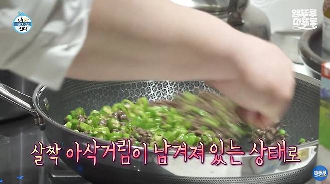 불 끄기 직전에 참기름 두 바퀴 휘익 둘러주면 감칠맛이 올라갑니다.