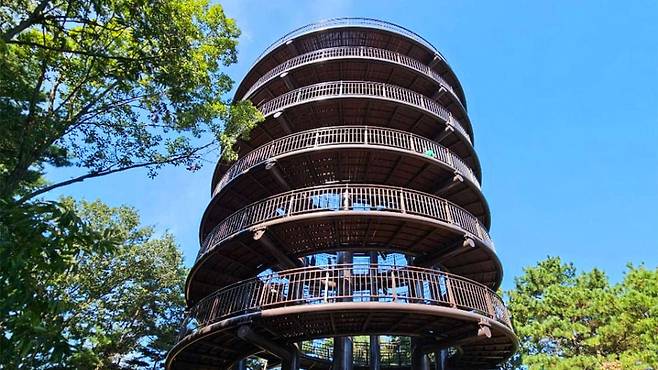 형태: 나선형 계단 구조 (오르는 과정 자체가 여행처럼 느껴짐)