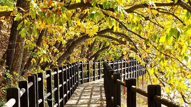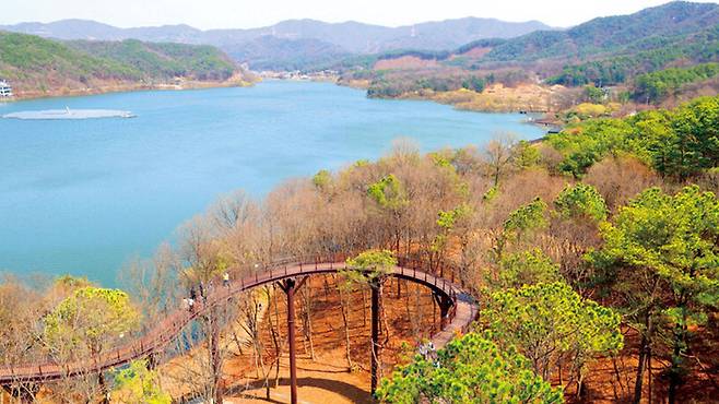 전망대에서 이어지는 하늘탐방로는 산과 호수를 잇는 친환경 산책로다. 계절마다 다른 풍경이 펼쳐져 봄의 야생화, 가을의 단풍을 즐길 수 있다.