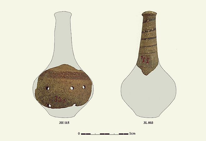 연구팀이 들여다본 대상은 기원전 2500~2000년 초기 청동기시대 4기(EBIV)에 만들어진 도자기 파편 19점이다. 모두 하마의 주택지에서 나왔는데, 속이 빈 손잡이 부분을 포함해 길이는 4.56㎝, 지름은 2㎝로 유아가 잡기 딱 좋은 크기였다.