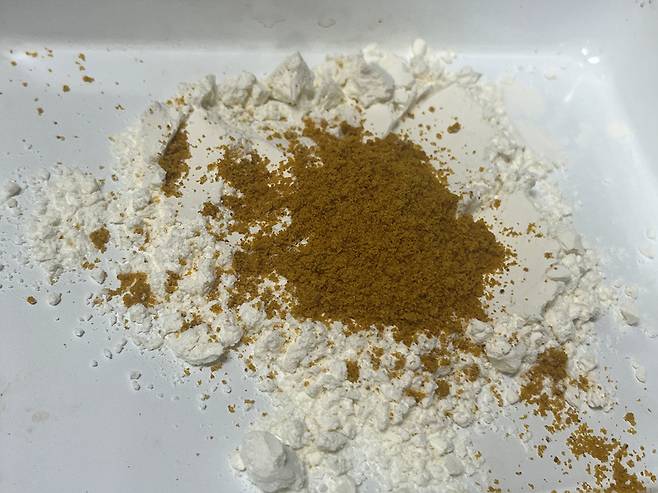부침가루 2스푼에 카레 가루 1스푼을 섞습니다. 카레가루가 바로 핵심인데요. 은은하게 풍기는 향과 노릇하게 구워지는 색감 덕분에, 두부가 한층 더 감칠맛 나는 반찬으로 바뀝니다.