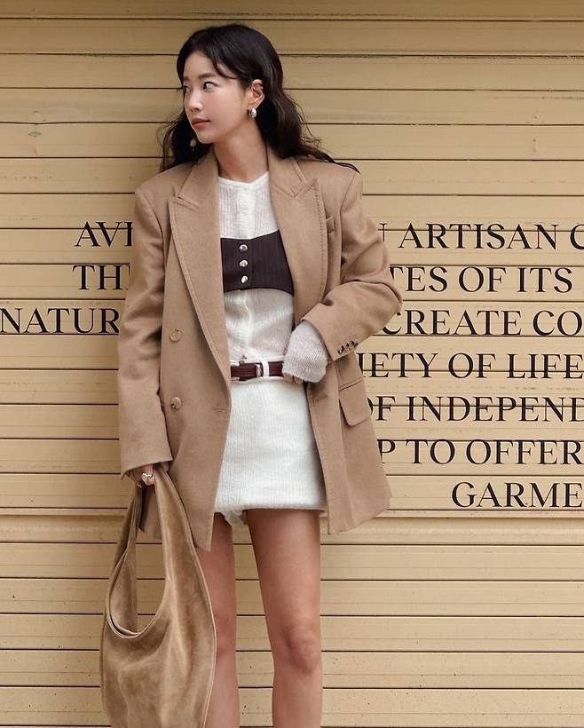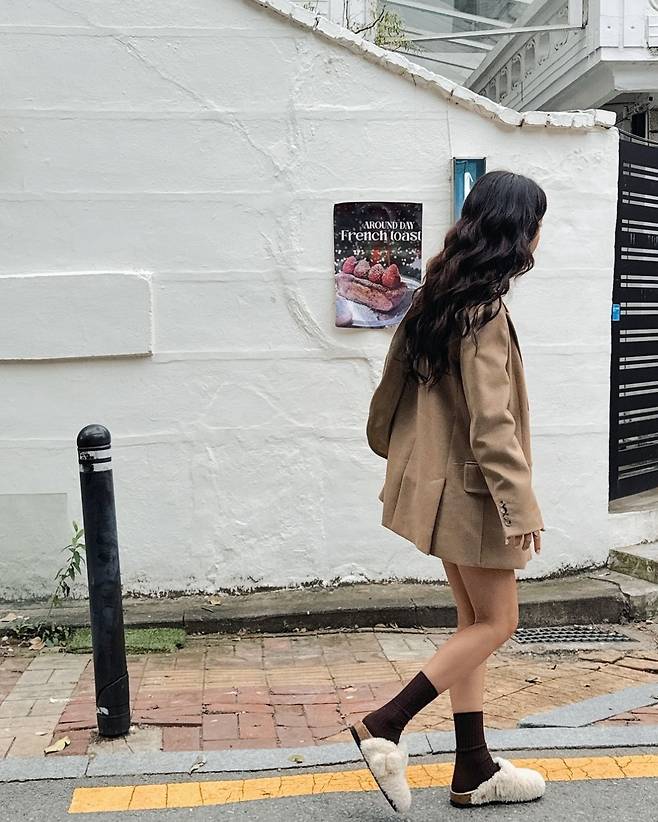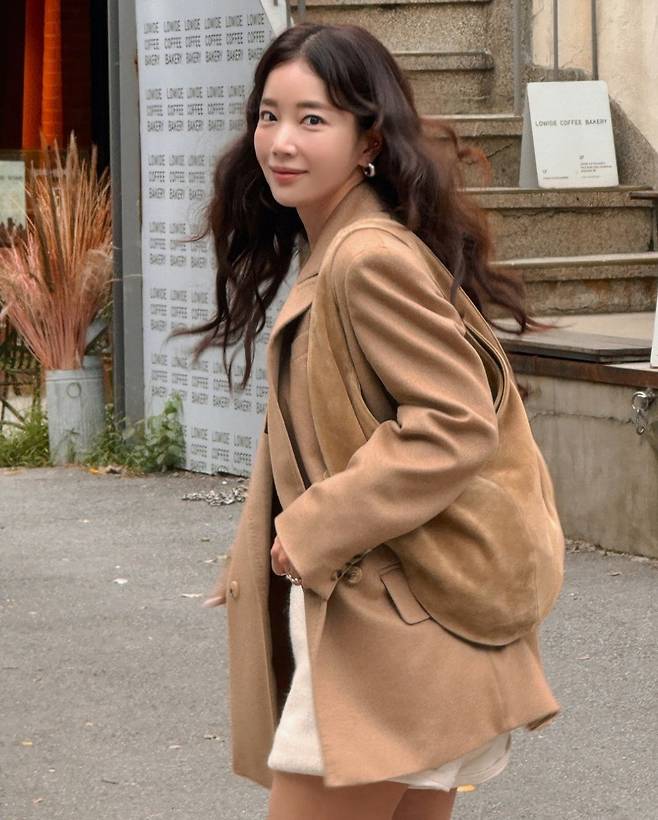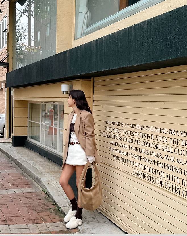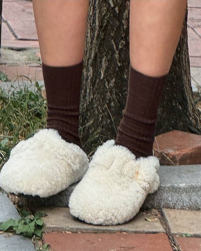 특히 기은세는 두툼한 오버핏 재킷을 걸치고 베이지색 스웨이드 숄더백과 털 장식 슬리퍼로 편안함을 더해 자연스럽고도 세련된 무드를 연출했습니다.