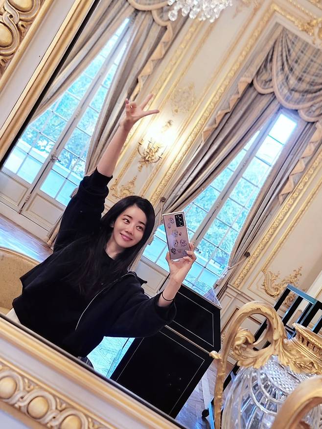 검은색 후드 집업을 착용하여 편안하면서도 자연스러운 분위기를 연출했다. 긴 생머리와 함께 별다른 액세서리 없이 의상 자체에 집중한 스타일링으로 꾸밈없는 매력을 선보였다. 소매를 살짝 걷어 올려 활동적인 느낌을 더했다.