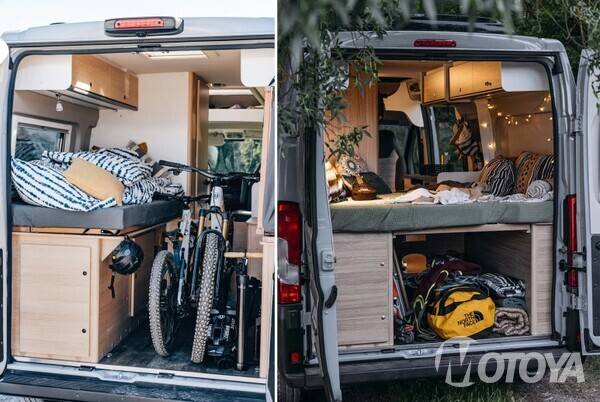 수납공간은 다양한 레저 활동에 편리한 구조를 가지고 있다. 기본적으로 침대 밑 공간에 많은 양의 캠피용품을 적재할 수 있다. 부피가 큰 자전거, 전기스쿠터, 스키, 카약, 카누, 낚싯대 등과 같은 짐을 실을 경우에는 침대의 하부 프레임을 위로 올려 사용하면 된다.