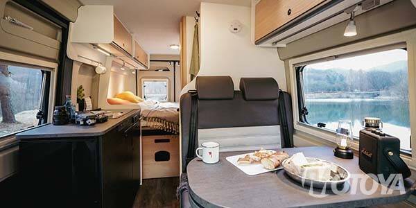 이를 극복하기 위해 유럽의 모터홈 제조사들에서는 클래스 B 모델의 지붕을 활용했다. 이번에 소개하는 클리프 600RT 모델도 이를 극복하기 위해 지붕 위로 팝업 텐트를 설치한 모델이다. 그 결과 4인 가족이 편리하게 사용할 수 있는 조건을 총족한다.