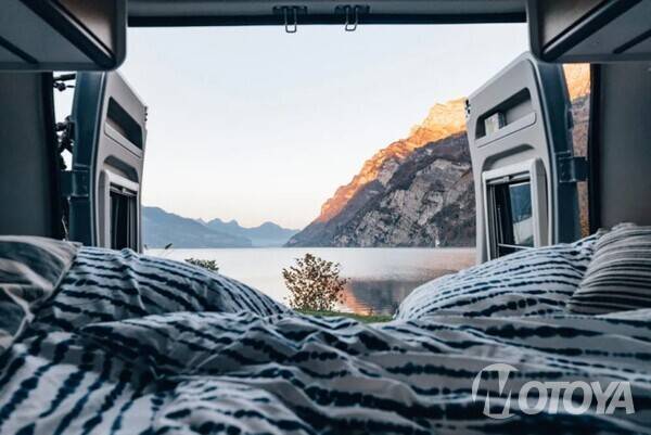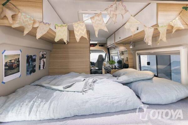 침실은 킹 사이즈급 크기를 자랑한다. 성인 2명과 어린이 1명이 취침할 수 있는 공간이다. 그러나 이 모델에는 팝업 텐트가 있기 때문에 굳이 그럴 필요가 없다. 테일게이트를 열면 침실만에서의 특별한 감성도 느낄 수 있다.