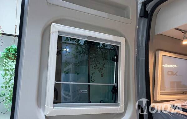 출입문에는 모기장이 설치되어 있어, 해충의 침입을 효과적으로 막아낼 수 있다. 또한, 크기가 큰 창이 있어 내부에서의 높은 개방감과 효율적인 환기 등이 수월하다. 출입문 밑으로는 전동 1단 스텝이 있어, 내외부로의 편리한 출입이 가능하다. 특히, 높이가 낮아 노약자나 어린이들이 사용하기 편리하다.
