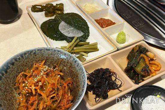 바싹 익혀 먹는 걸 좋아한다면, 직원이 구워주는 굽기가 취향에 맞지 않을 수도 있다. 하지만 고기 is 뭔들...특히 쌈장이나, 고추냉이, 김치 등이 제공되는데, 가장 맛있는 건 바로 소금이다. 상추와 깻잎이 없으면 삼겹살을 덜 먹게 되는데, 소금 만으로도 1.5인분을 거뜬히 해치워 버렸다.
