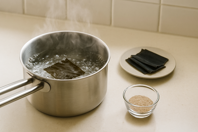 단, 건조 다시마를 너무 오래 끓이기보다는 끓기 직전까지 우려내는 것이 좋습니다.