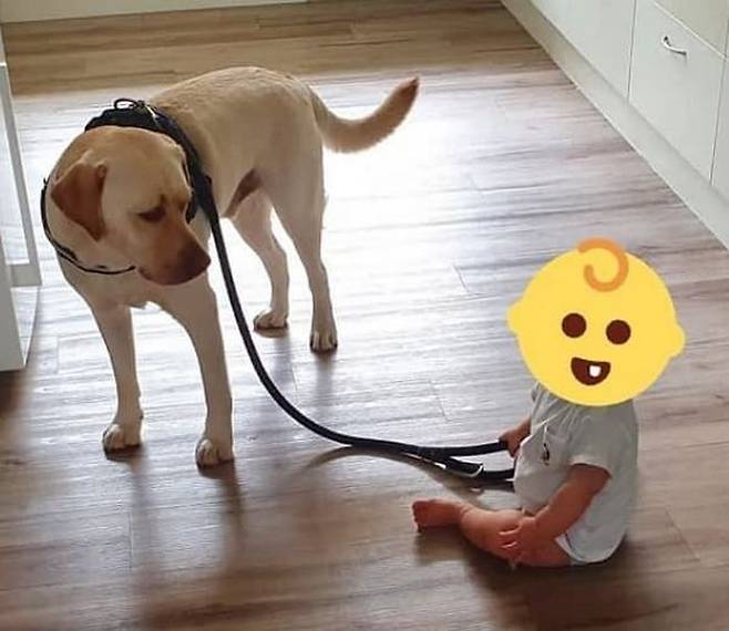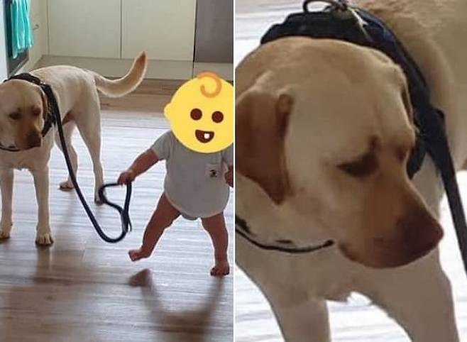 사연은 이렇습니다. SNS상에는 이제 막 걸음마를 뗀 아기를 바라보는 래브라도 리트리버 강아지의 표정이 담긴 사진이 올라온 것.