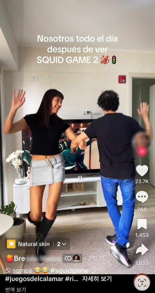 또 'sbe***'는 머릿속에 오징어게임2의 '둥글게 둥글게' 밖에 없다는 의미의 이미지를 게시했고, 'bre***'는 '둥글게 둥글게' 노래에 맞춰 친구와 함께 팔짱을 끼고 돌며 노는 영상을 올렸다.