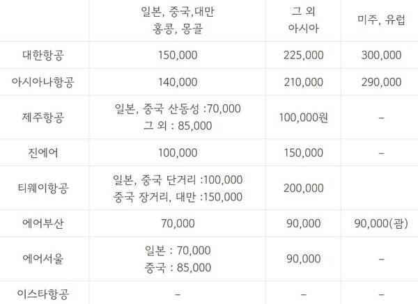 - 국내선, 국제선 위탁 불가 : 제주항공, 티웨이, 이스타, 에어서울