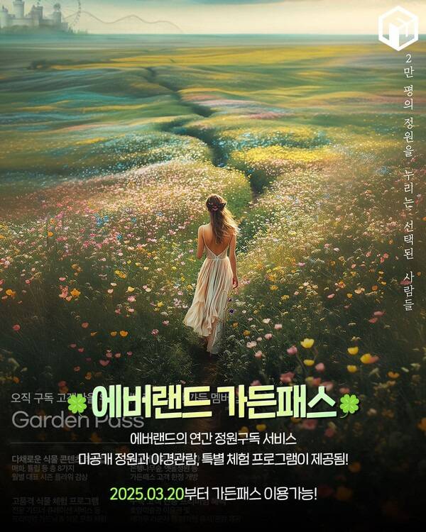 에버랜드 가든패스는 2025년 에버랜드가 국내 최초로 선보인 사계절 정원구독 서비스입니다. 2025년 3월 10일부터 선착순으로 구독자를 모집하기 시작했는데요. 가든패스 이용은 3월 21일부터 가능합니다.