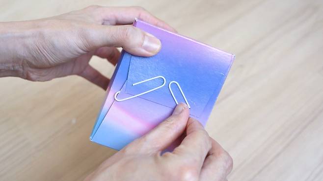 이때 다쓴 갑티슈 커버를 버리지 말고 다시 휴지를 넣어 사용해 보세요. 한쪽면을 열고 휴지를 넣고 클립이나 테이프 등으로 고정시켜 놓으세요.