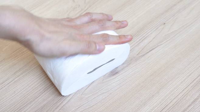 그리고 손으로 여러번 휴지를 눌러 줍니다. 그러면 안에 있는 휴지심이 말랑말랑 해지면서 빼기 쉬운 상태가 되는데요.