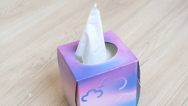 이때 다쓴 갑티슈 커버를 버리지 말고 다시 휴지를 넣어 사용해 보세요. 한쪽면을 열고 휴지를 넣고 클립이나 테이프 등으로 고정시켜 놓으세요.