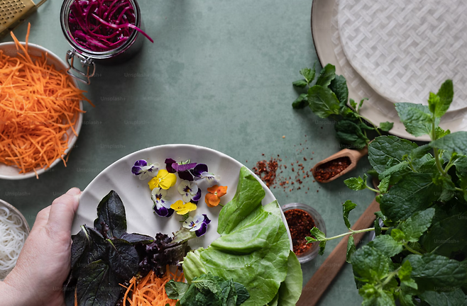 A. 라이스페이퍼 대신 로메인 잎으로 감싸거나, 단백질 재료를 연어·닭·두부·새우로 돌려보세요.