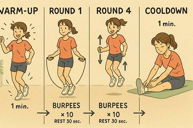 4. ‘필라테스 + 코어 HIIT’ 15분 루틴 (주 3회)