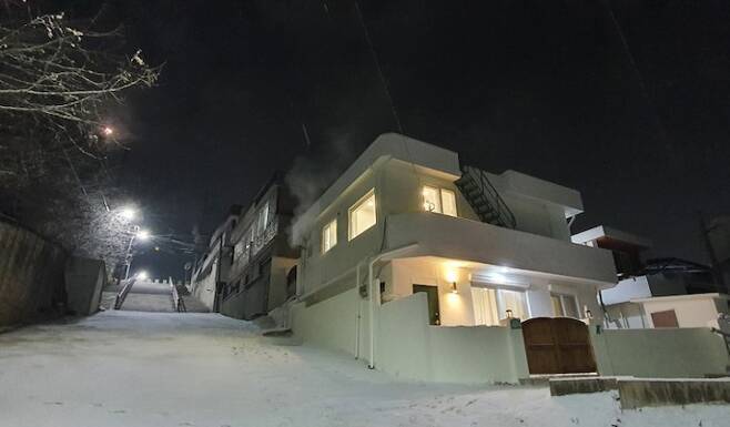 2층 집인데 특이하게 1층과 2층이 완전하게 분리되어 있었어요. 아예 다른 집인 것처럼요. 1층 출입구는 정면에, 2층 출입구는 측면에 있어 아예 입구부터 분리된 구조였어요. 저희 조건에 최적화된 구조였죠.