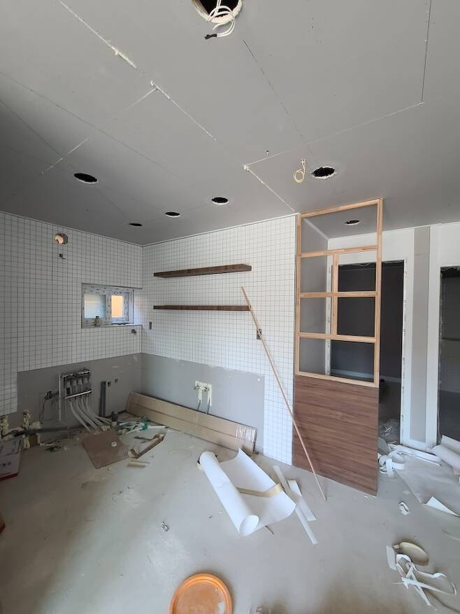 최종 도면이 나오고 본격적인 공사가 시작되었어요. 리모델링 기간은 약 한 달 정도 걸렸답니다.