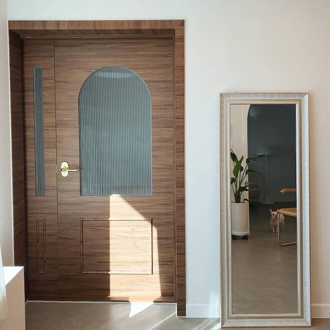 중문 옆에는 신혼 때부터 사용하던 전신 거울을 두었어요. 프레임 없는 거울을 두려다가 기존 거울도 나름 잘 어울리는 것 같아서 그냥 두고 있어요. ㅎㅎ