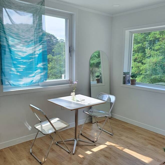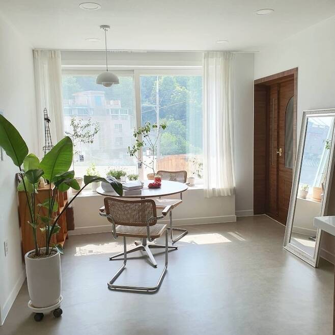 이 방은 햇빛도 잘 들어오고 뷰가 정말 좋아서 홈카페로 애용 중이에요 ^^