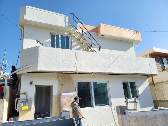 샷시 공사 마무리 후 마지막으로 외벽에 페인트를 칠해주었어요.