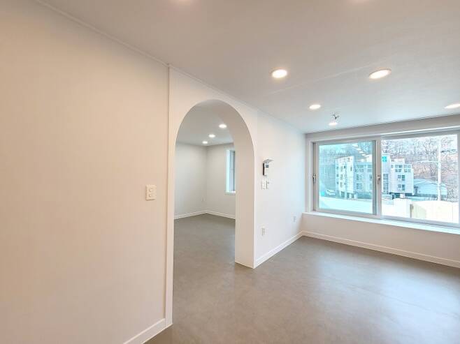 리모델링하면 꼭 넣고 싶었던 아치 디자인. 집이 아담한 편이라 방 문을 뜯어내고 넓혀서 아치로 개방감을 주기로 했어요. 1층과 2층에 아치 입구를 하나씩 넣었답니다. 로망을 실현했어요!