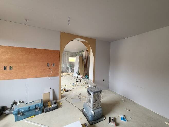 목공사에 들어가기 시작하면 하루하루 집이 변화하는 게 눈에 보여요. 집에 찾아갈 때마다 어딘가 달라져 있어서 신나고 놀랐던 기억이 나네요 ^^ 점점 깔끔하게 업그레이드되고 있는 우리집!