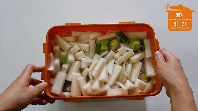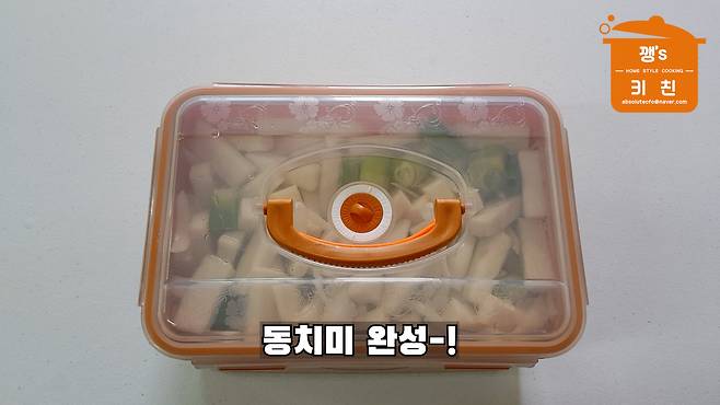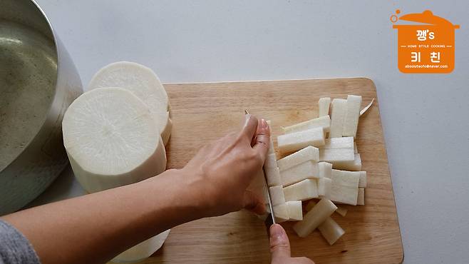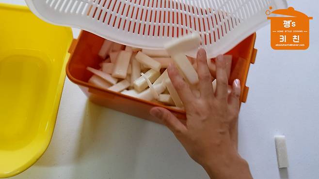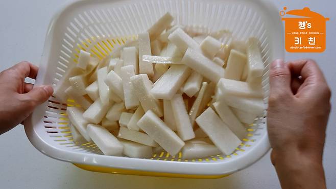 절여진 무는 체에 밭쳐 물기를 빼주세요