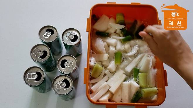 8. 사이다와 물을 1 : 1 비율로 넣기