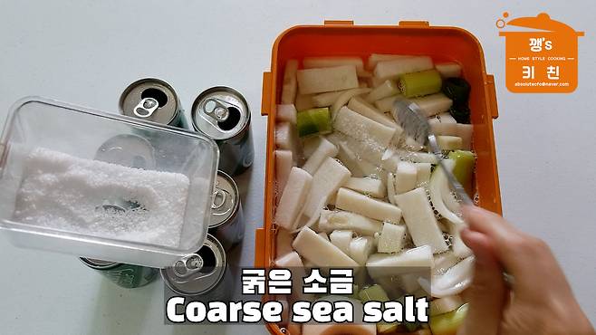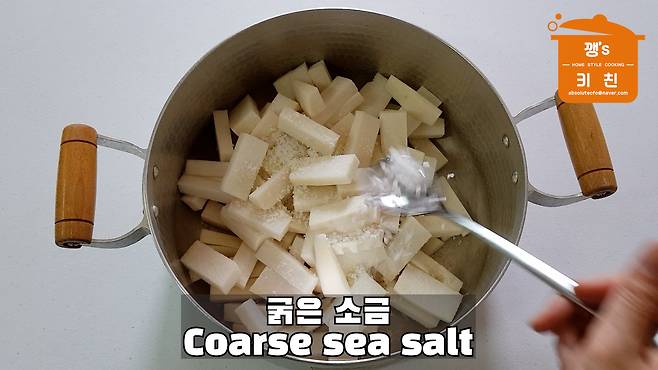 무, 굵은소금 2T, 양파, 대파, 생강,