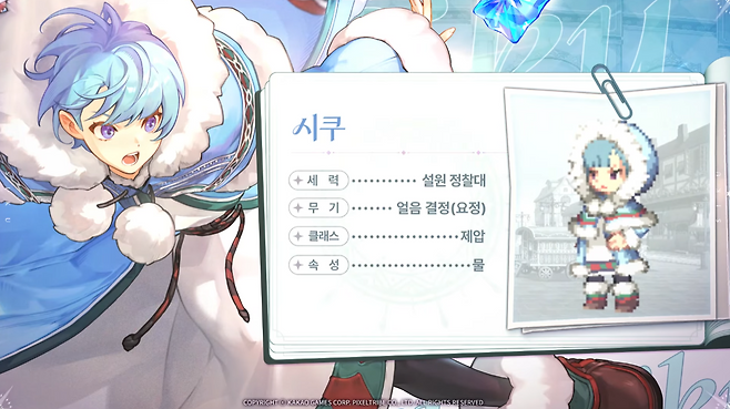 출시 후 처음으로 추가된 캐릭터 ‘시쿠’는 물 속성의 제압 클래스 기사로, 전투 중 특수기 ‘냉기 흡수’를 사용해 고유 자원인 ‘만년설의 냉기’를 소모하며 기본기와 특수기를 강화해 공격의 흐름을 이어간다. 또한 누적 피해 시 아군에게 보호막을 부여하고, 홀드기와 궁극기 등을 통해 냉기를 충전해 공격과 생존을 동시에 책임지는 전략적 플레이를 선보인다.