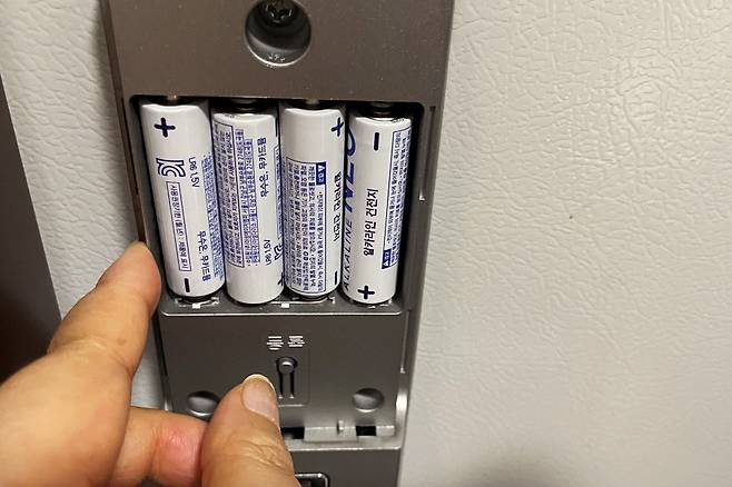 집에 들어가시면 꼭 건전지를 교체해 주세요. 갑자기 도어록 방전 됐을 때 알아두시면 좋을 것 같습니다^^*