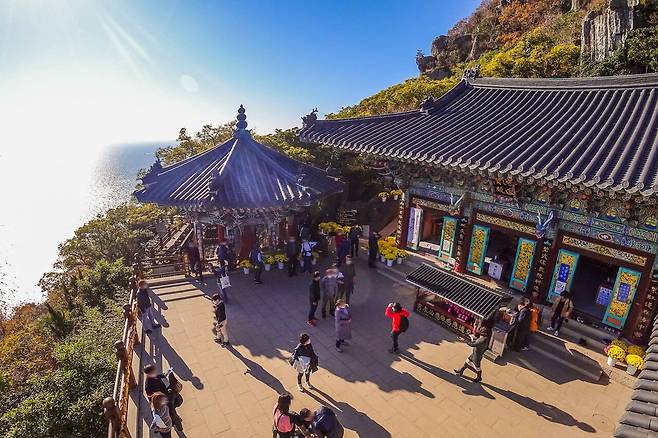 또한, 대웅전 앞 마당에서 바라보는 남해 바다의 비경은 그림처럼 펼쳐져 있어 CNN의 선택을 받은 것일지도 모르겠네요.