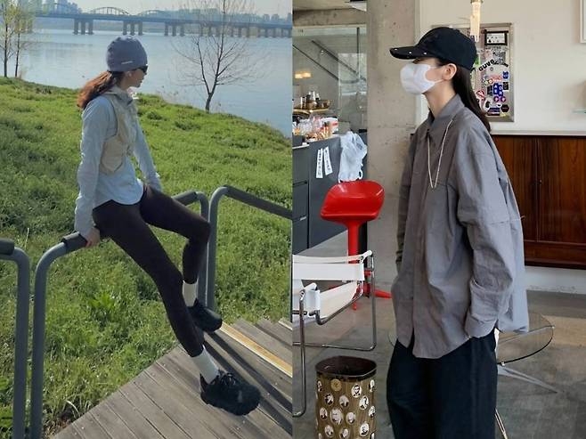 한강변에서 포착된 레깅스핏 역시 군살 없는 실루엣으로 눈길을 사로잡았고, 머리끝부터 발끝까지 완벽한 스타일링으로 힙스터 룩의 정석을 보여줬습니다.