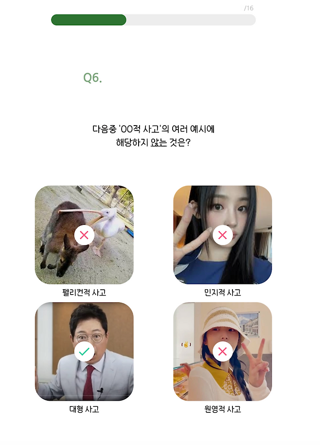 '펠리컨적 사고', '민지적 사고', '원영적 사고'에서 재확인 가능합니다.